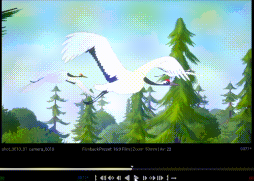 In the example below, we can see this Shot is made of 3 Planes with the animation of a flying crane. All cranes are attached to the Camera and follow its move: