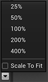 You can also use the menu here to choose the size of your canvas in %. “Scale to fit” will automatically fit the size of your canvas to the size of the Viewport window.
