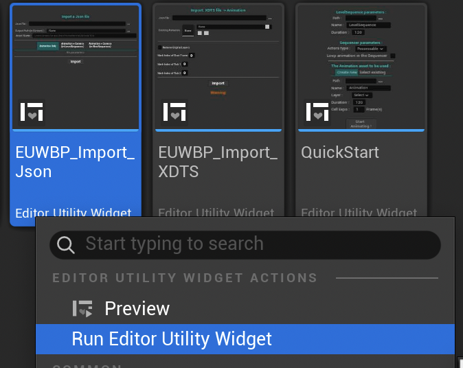 The widget to allow import animations thanks to JSON format can be found in the Content folder of Unreal Engine, in the following path “Plugins ▸ Odyssey ▸ Widgets”