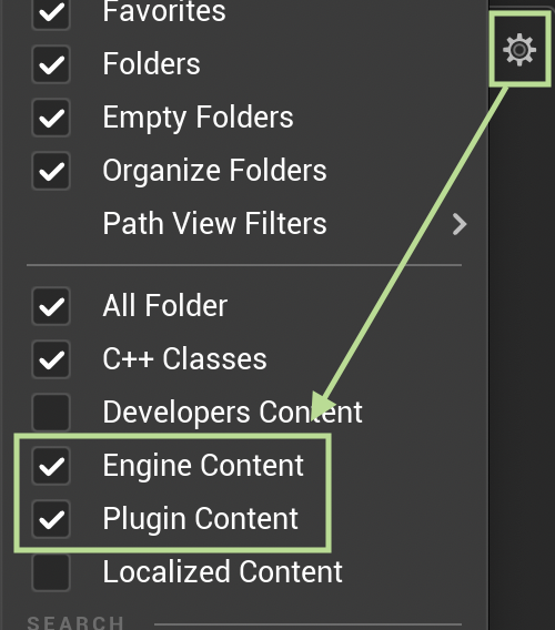 If you cannot see this panel, make sure you enable the following options in the Content Folder settings: