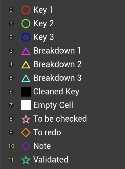 Mark: Use an index between 0 and 11 to determine what symbol should be used in the data sheet.