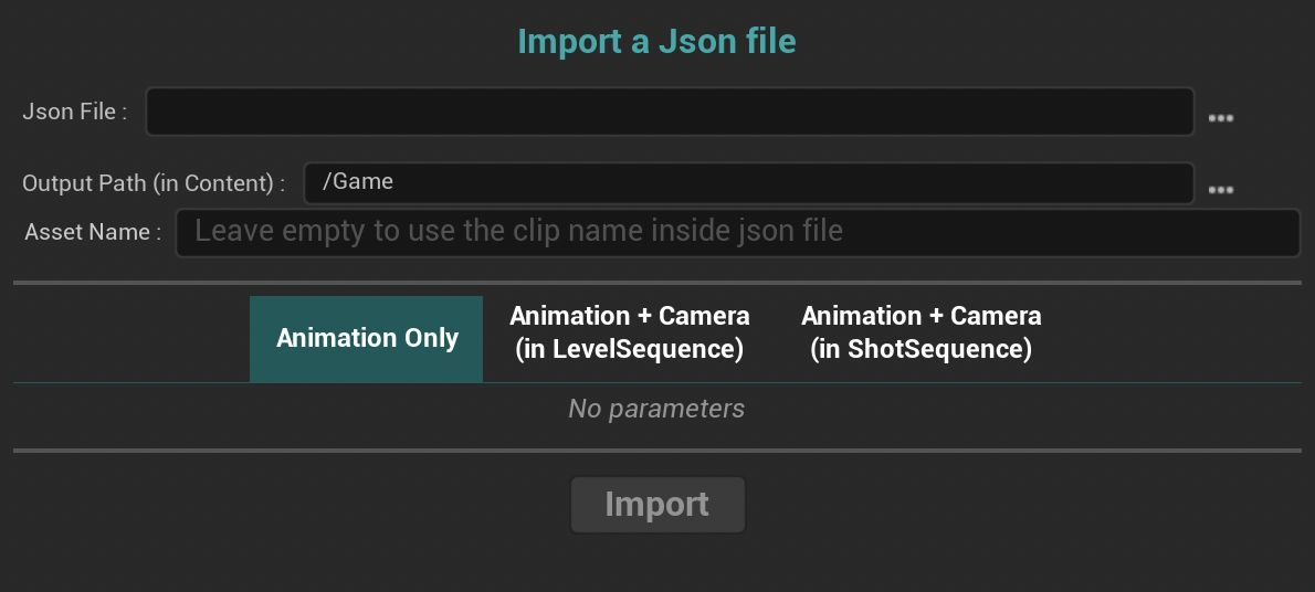 The widget to allow import animations thanks to JSON format can be found in the Content folder of Unreal Engine, in the following path “Plugins ▸ Odyssey ▸ Widgets”