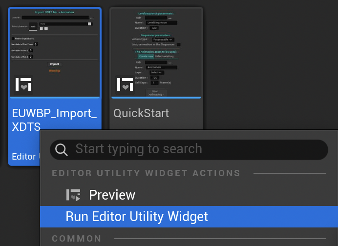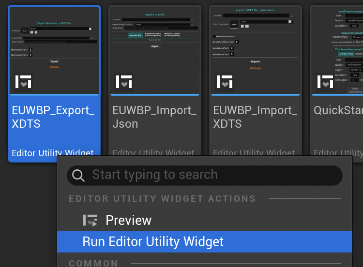 Widget to allow import and export animations thanks to XDTS format can be found in the Content folder of Unreal Engine, in the following path “Plugins ▸ Odyssey ▸ Widgets”