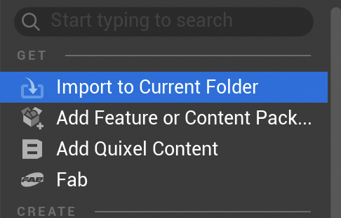 Odyssey being based on Unreal Engine, projects shares the same structure. That means you can import assets from the Fab marketplace, which will require you to install the Epic Game Store and create an account.